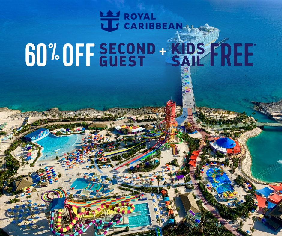 Set sail for savings – up to 60% off second guests and Kids Sail Free! Explore destinations like Cozumel and CocoCay on select sailings through 2025. Offer valid thru May 31, 2025.